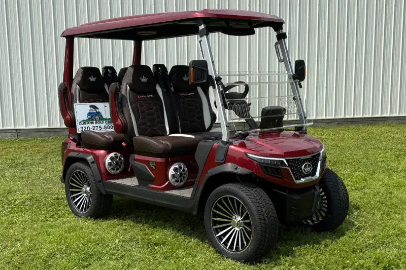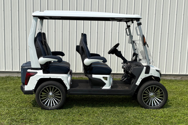 The Evolution D-Max GT4 is a powerful and stylish lifted golf cart built for both on and off the course. With rugged tires, high ground clearance, premium seating, and a long-lasting lithium battery, the D-Max GT4 delivers smooth rides, extra durability, and plenty of room for passengers. Perfect for recreation, neighborhoods, or work use.
